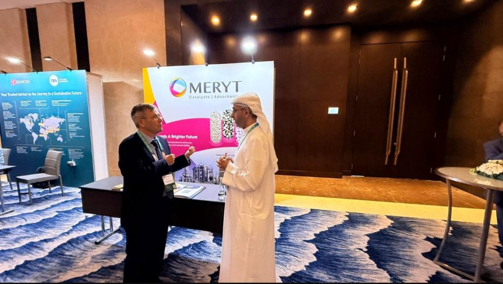 Our CEO, Dr. Meritxell Vila-Fontes, and COO, Mr. Mohamed Almheiri, represented MERYT at the forum, engaging in insightful discussions and connecting with industry leaders from across the region. MERYT showcased its own stand, presenting cutting-edge solutions and expertise in petrochemical catalysis, tools that play a critical role in driving energy efficiency and sustainability.